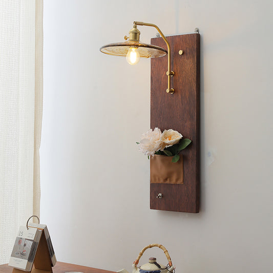 French Retro Solid Wood Flower Wall Lamp Medieval Bedroom Bedside Copper Glass Staircase Decorative Wall Lamp