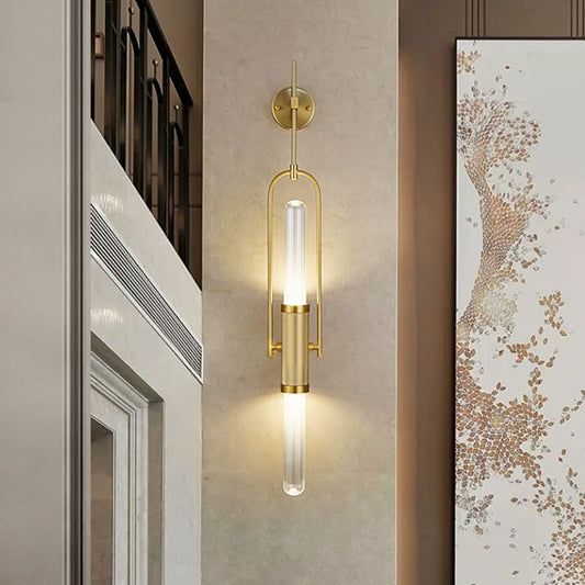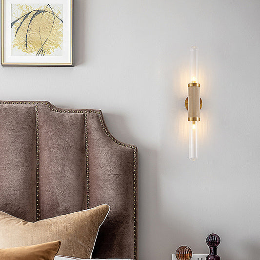 All Copper Light Luxury Wall Lamp Minimalist Bedroom Bedside Lamp Living Room Nordic Bar Hotel Glass Strip Wall Light